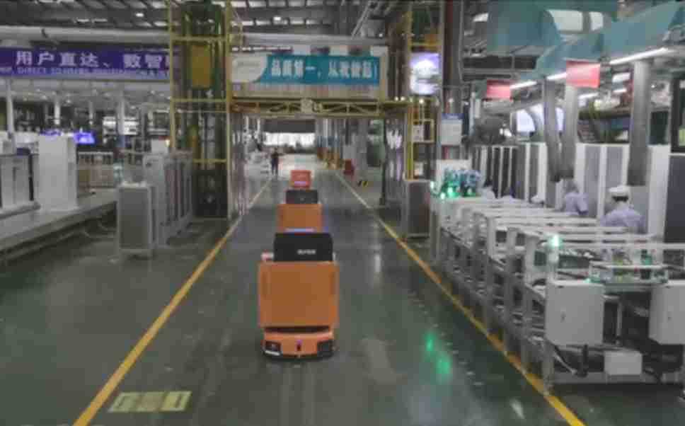 为车载冰箱物流配送打造的智能解决方案,,包含产中物流通过潜伏举升AMR搬运至线边,,,,产后成品物流智能仓储,,,流程包含产中物流智能齐套入库,,,,线边安灯叫料AMR智能配送至线边,,,成品入库、、、、出库,,通过无人堆高车机器人,,,,智能仓储管理替代人工作业管理,,,实现更高存储、、、更高效率、、、更具柔性化的解决方案。。。。